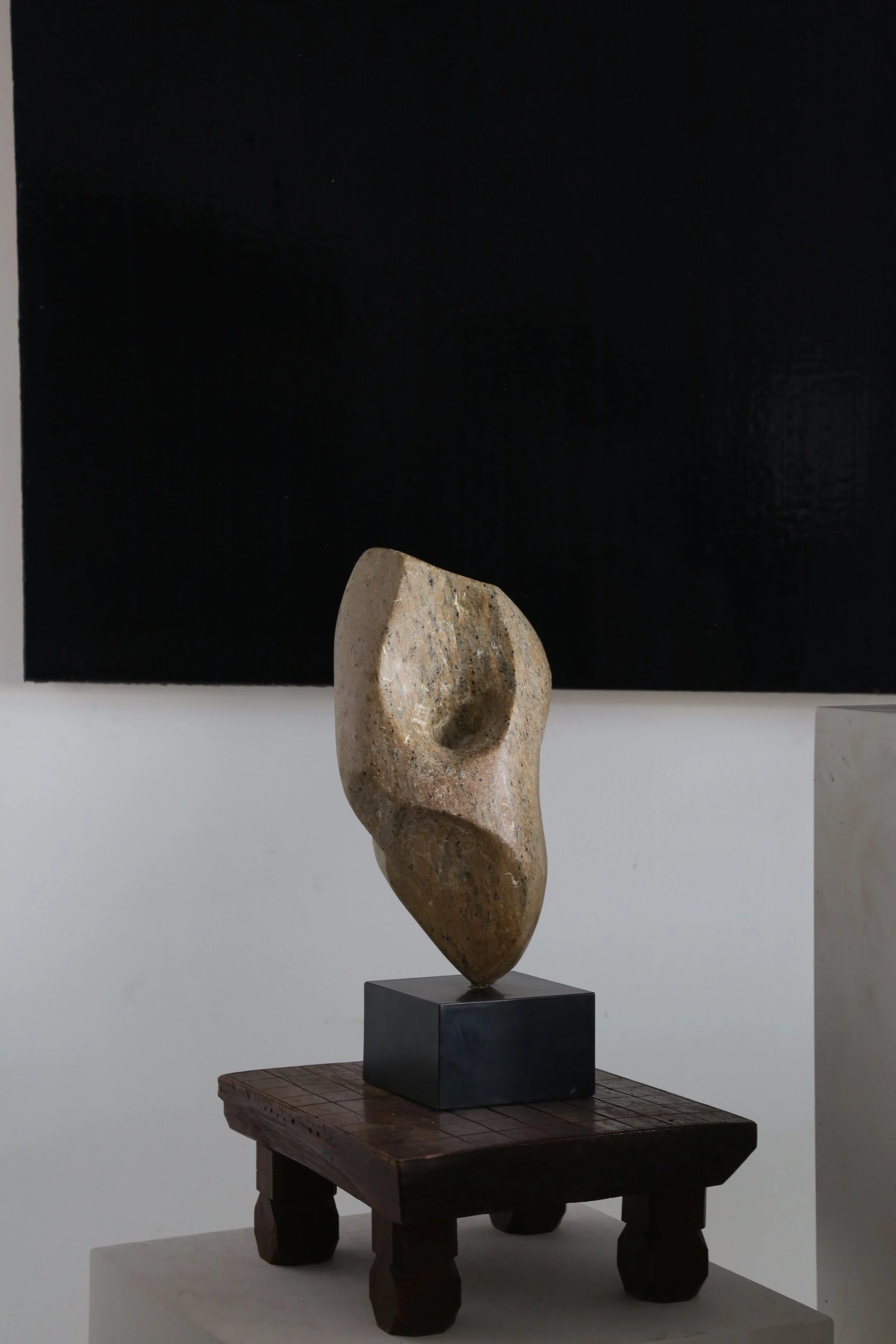 Striking organic carved stone sculpture.