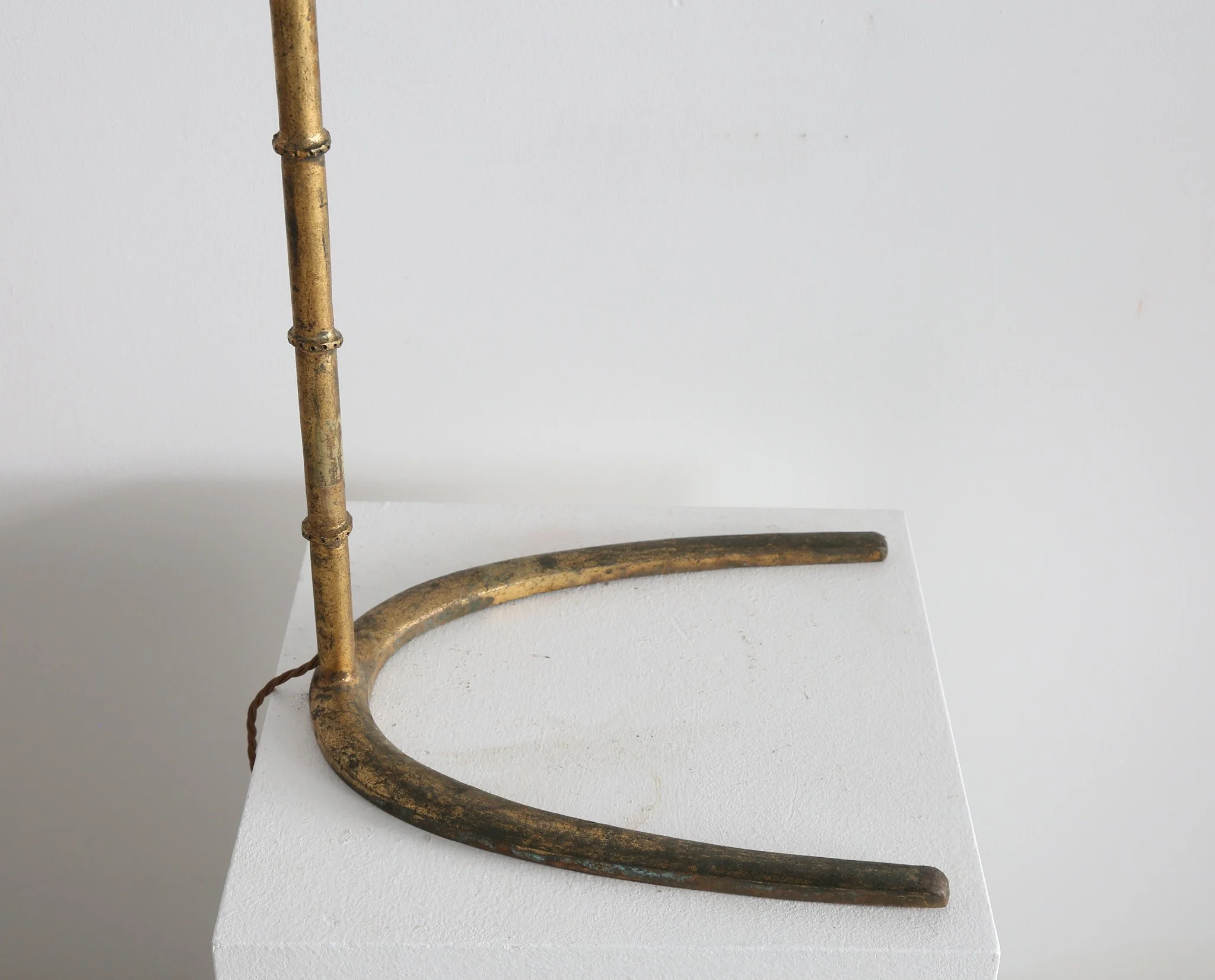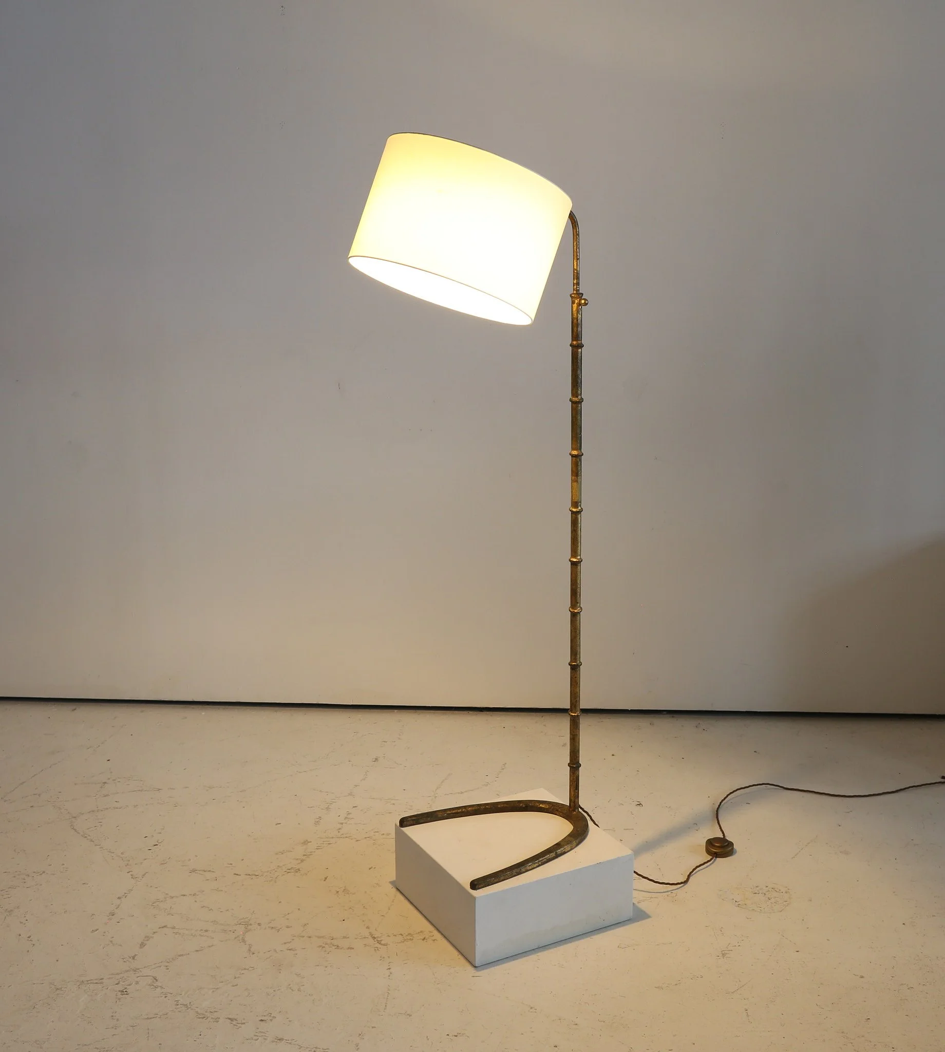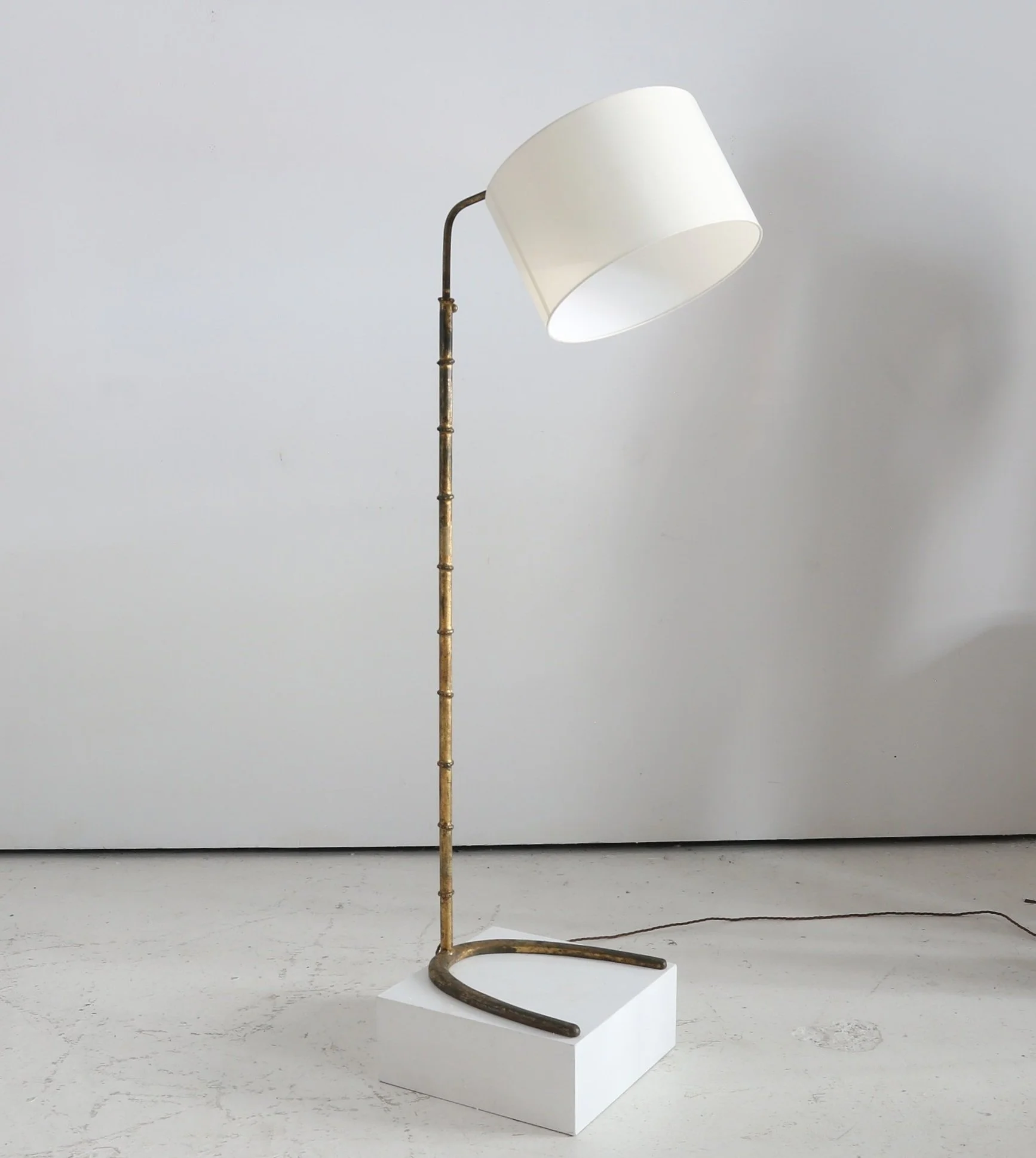 Exceptional adjustable brass floor lamp in the original faded gilt.