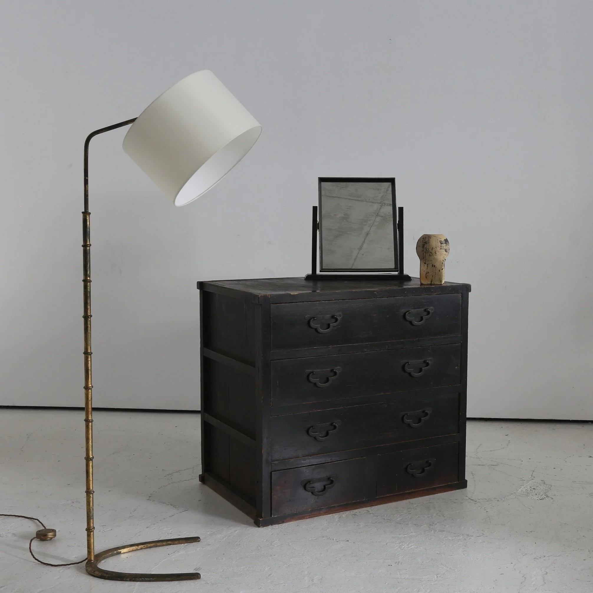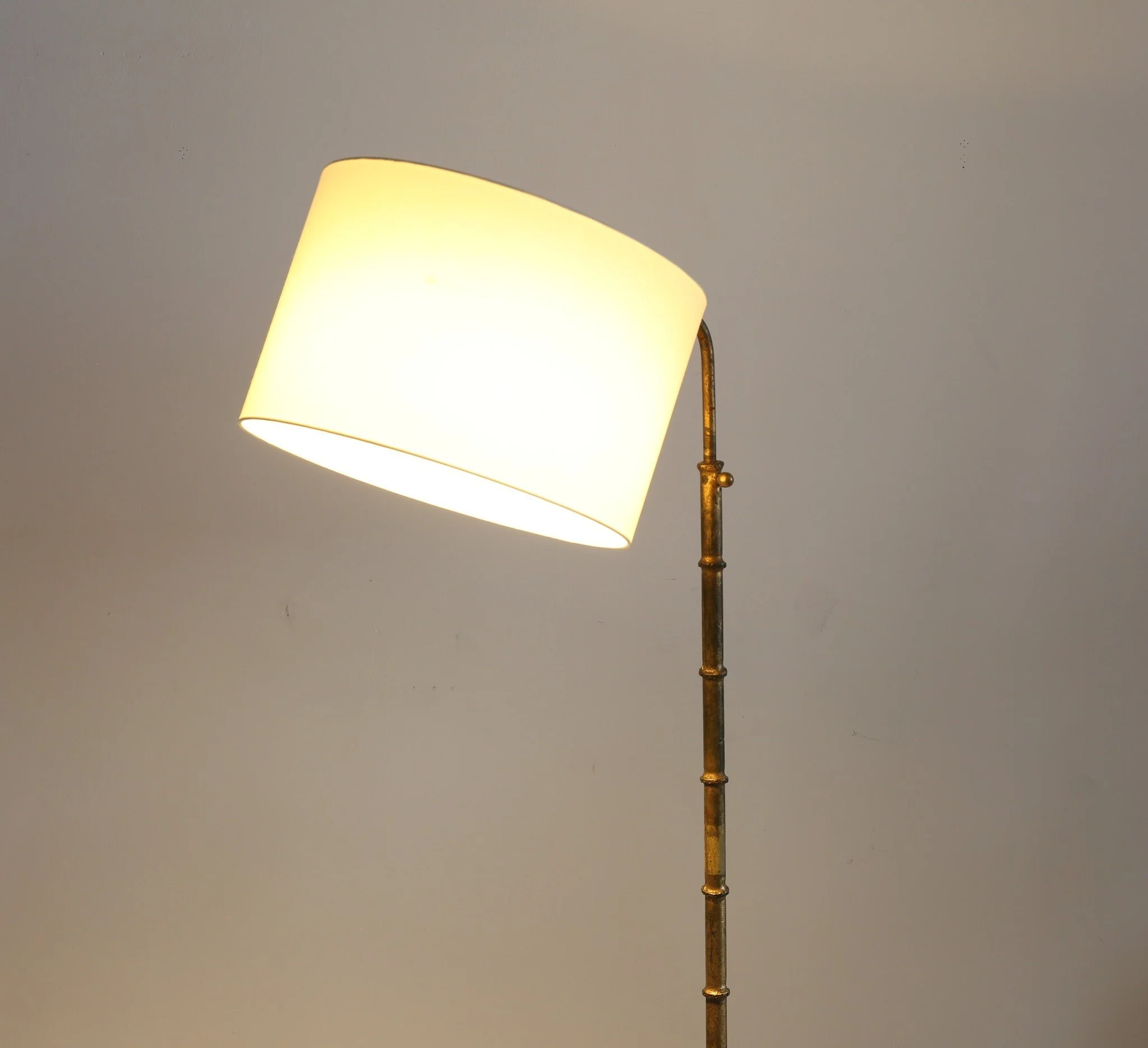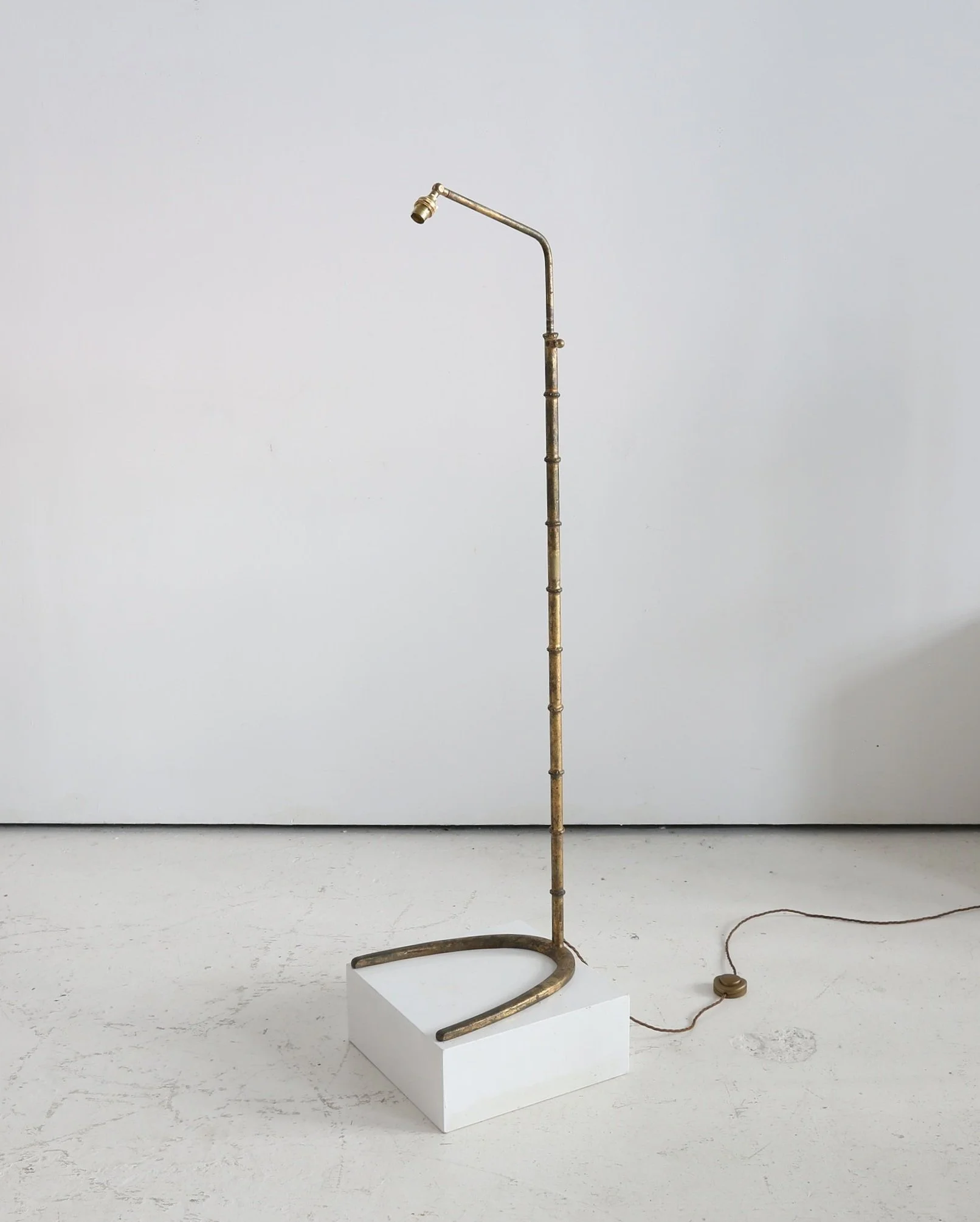 Exceptional adjustable brass floor lamp in the original faded gilt.