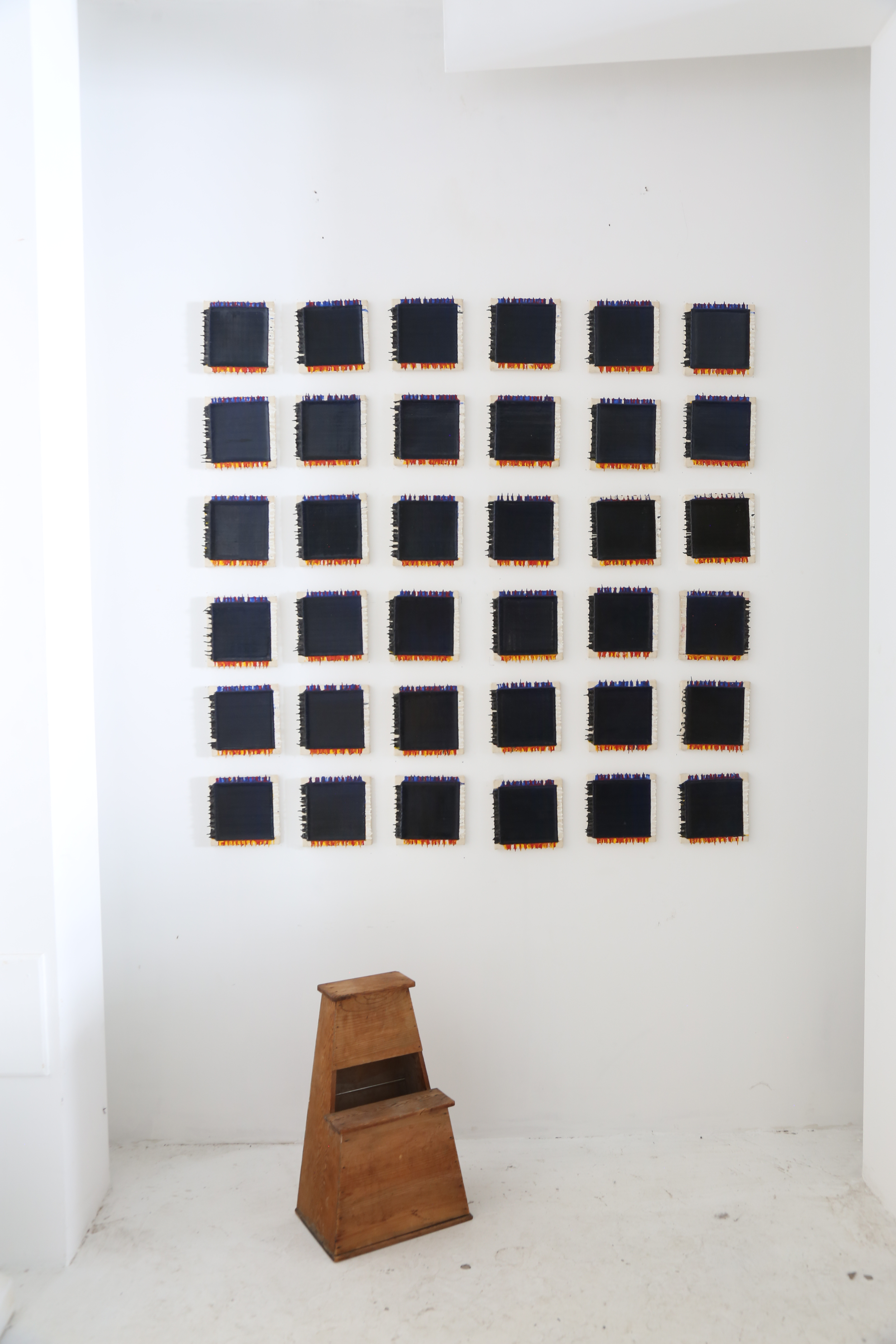 This work is catalogued as such: ‘Brush structure red/white/yellow/grey/blue/BLACK x8’.