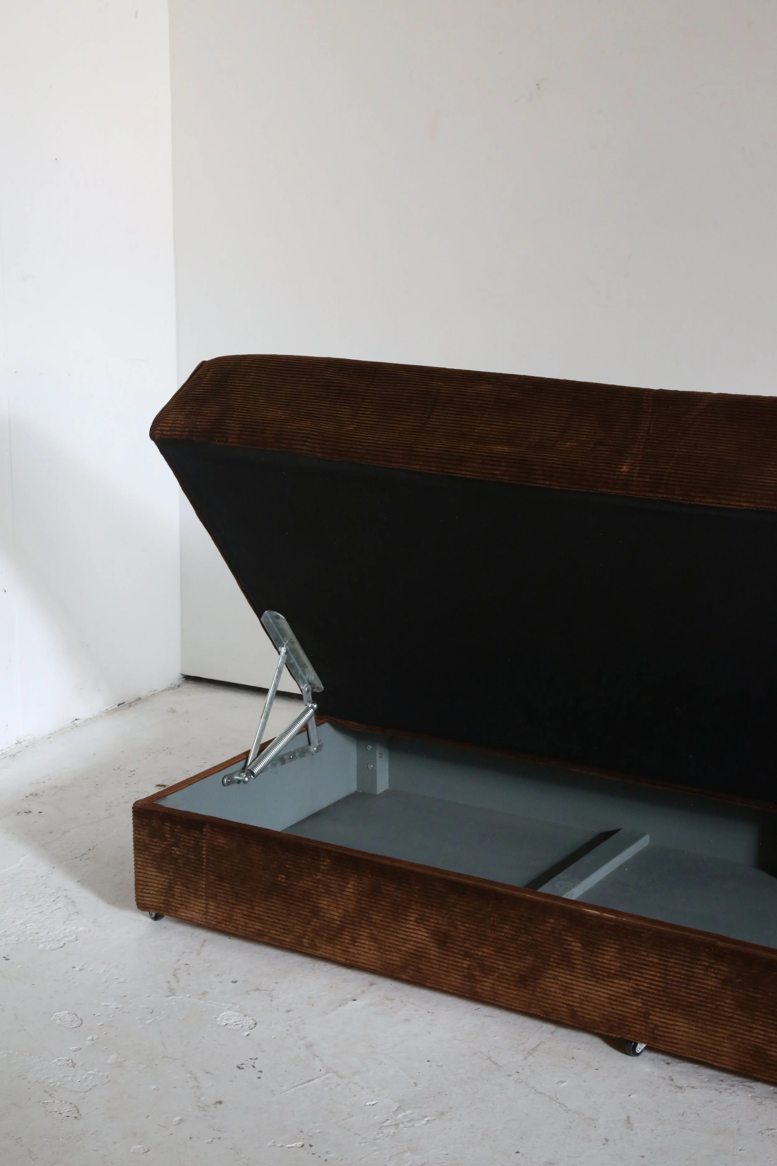 Excellent corduroy sofa, with removable cushions and storage underneath.