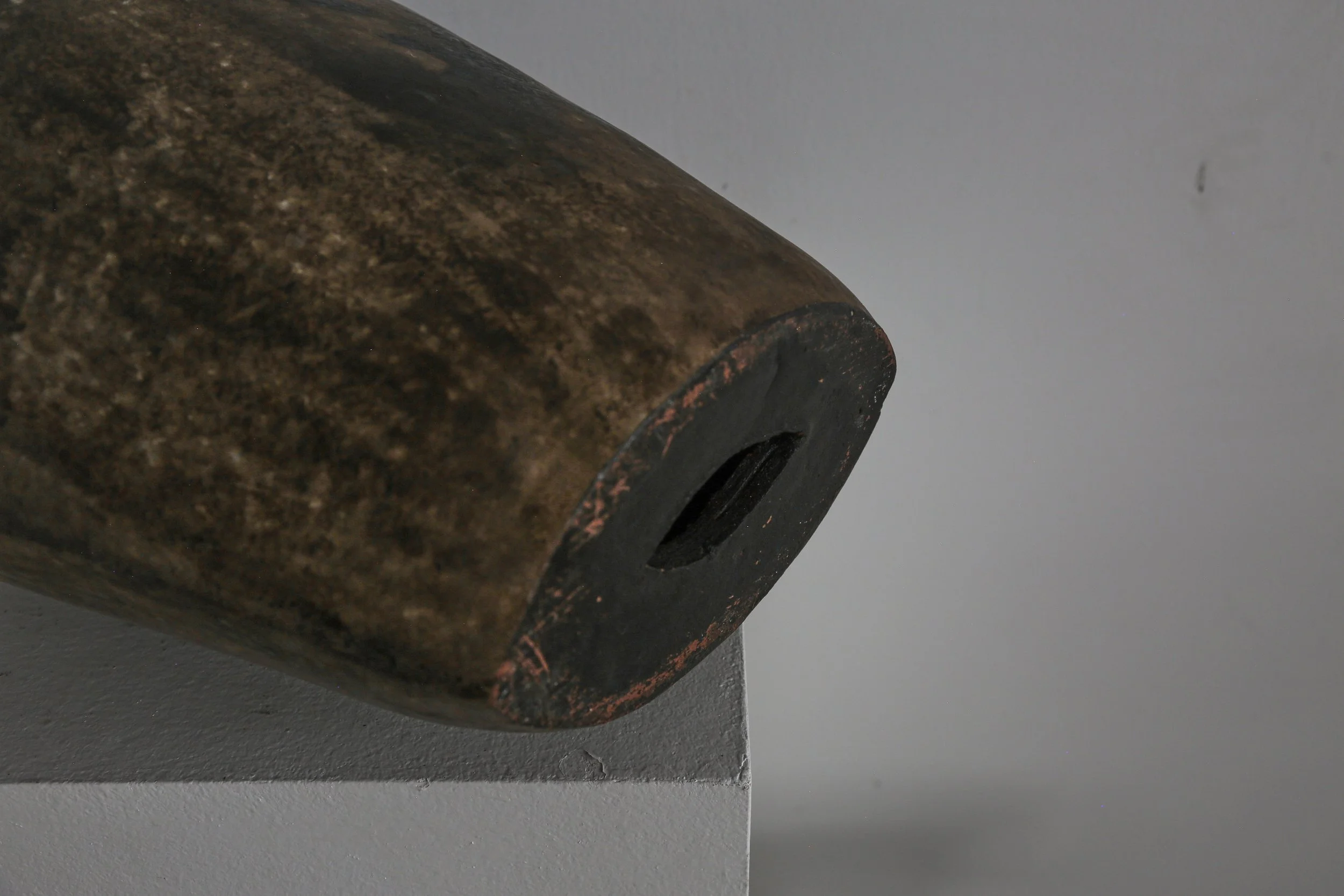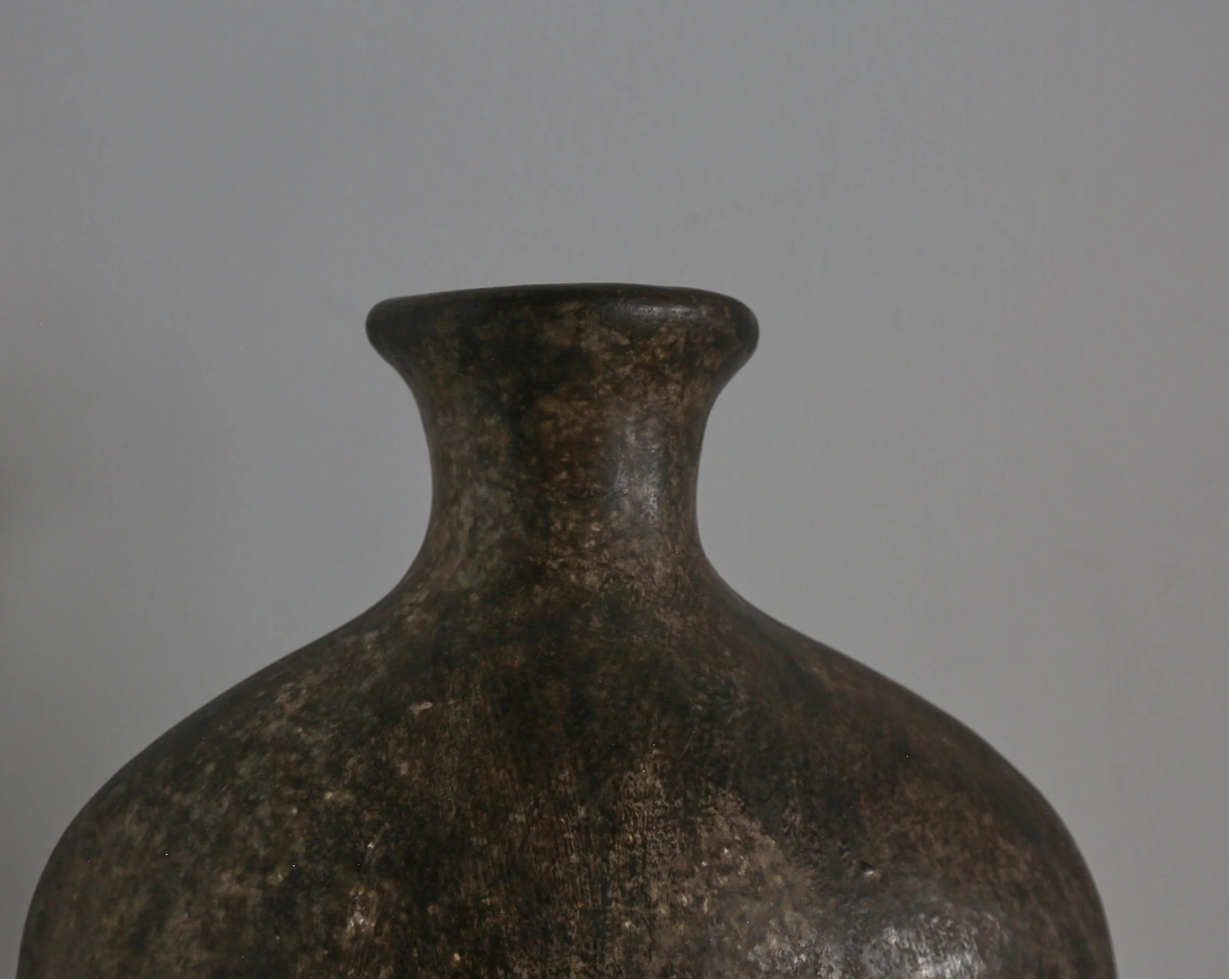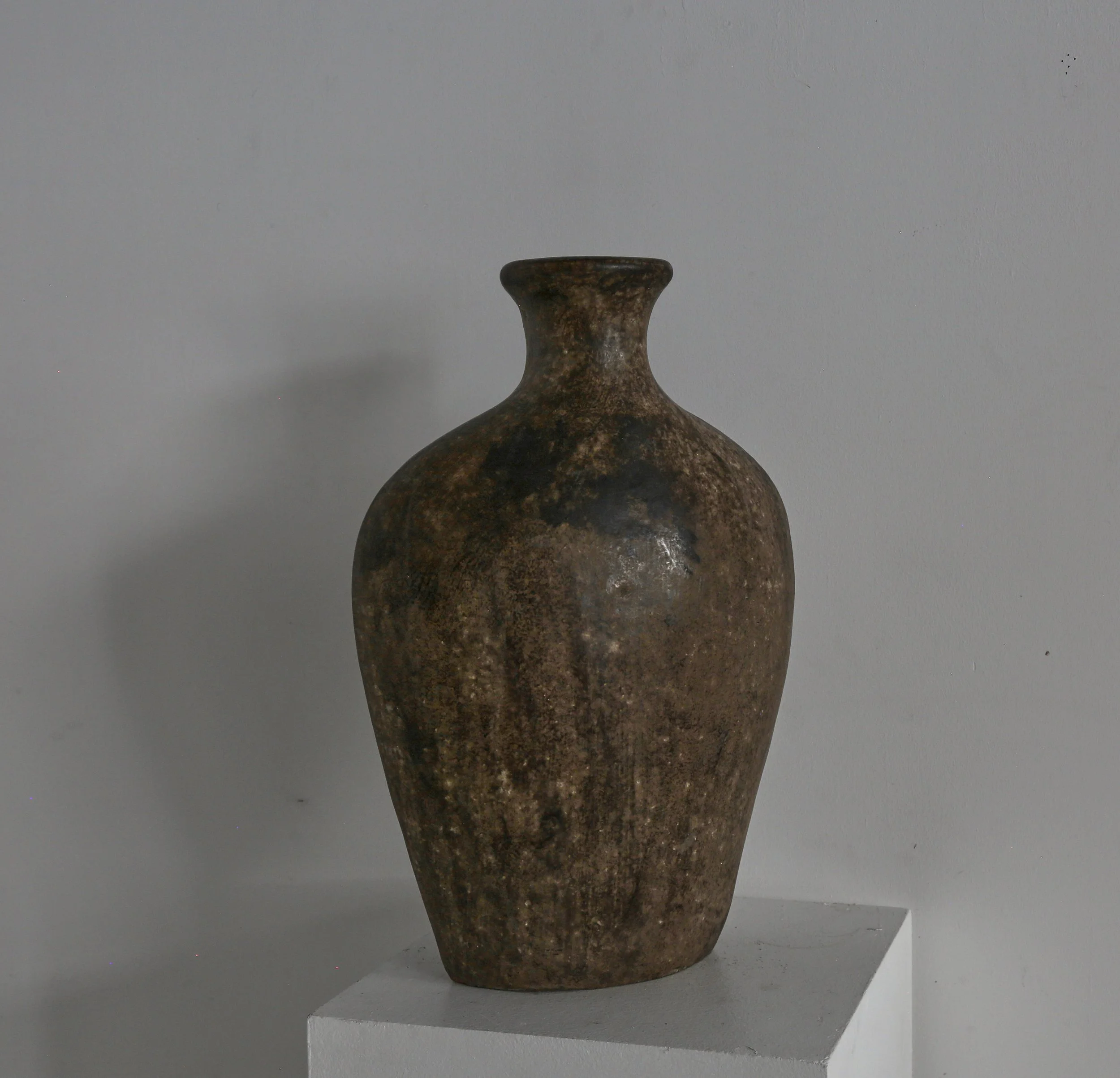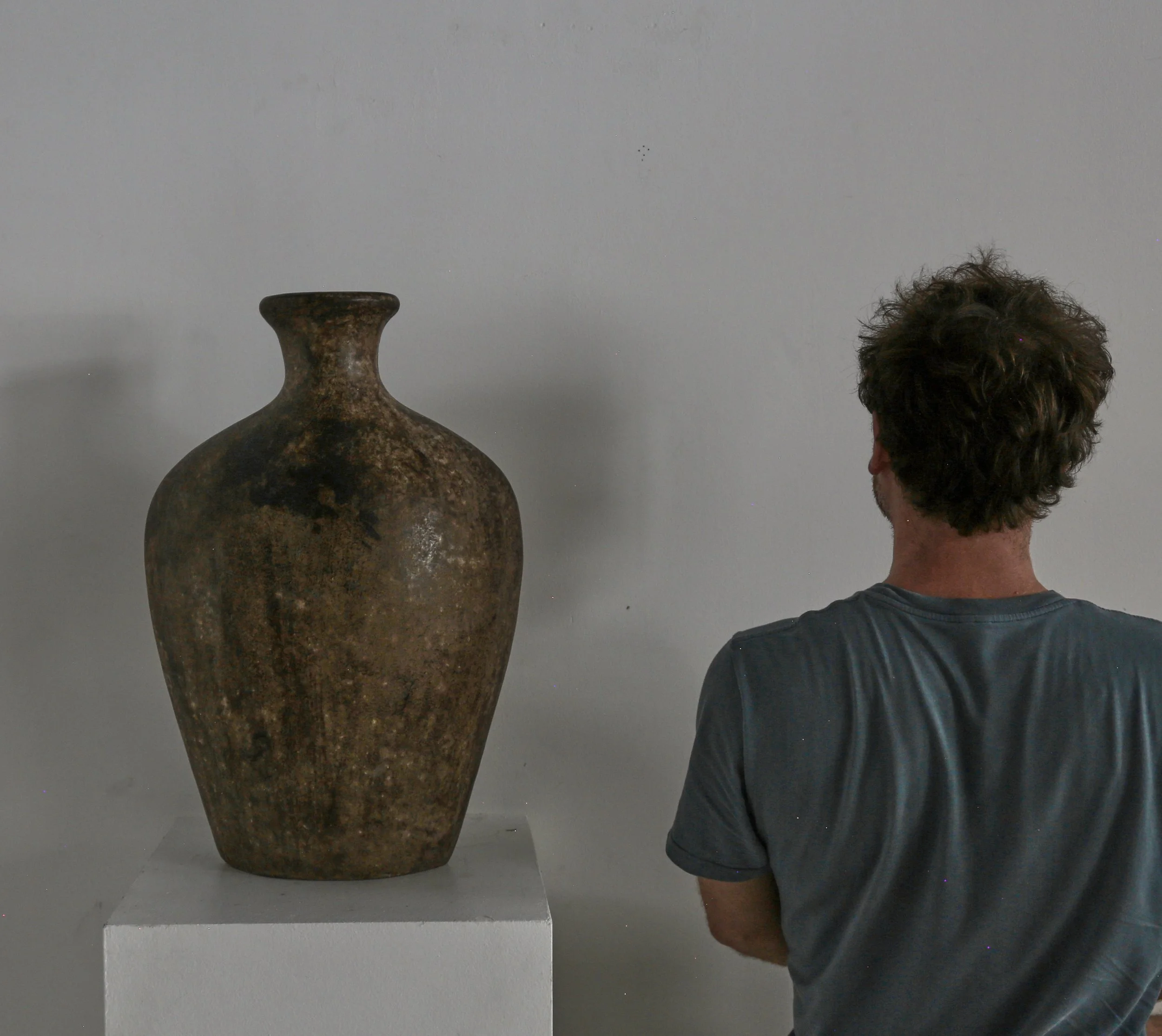 Mottled glazed ceramic, almost the size of a torso.