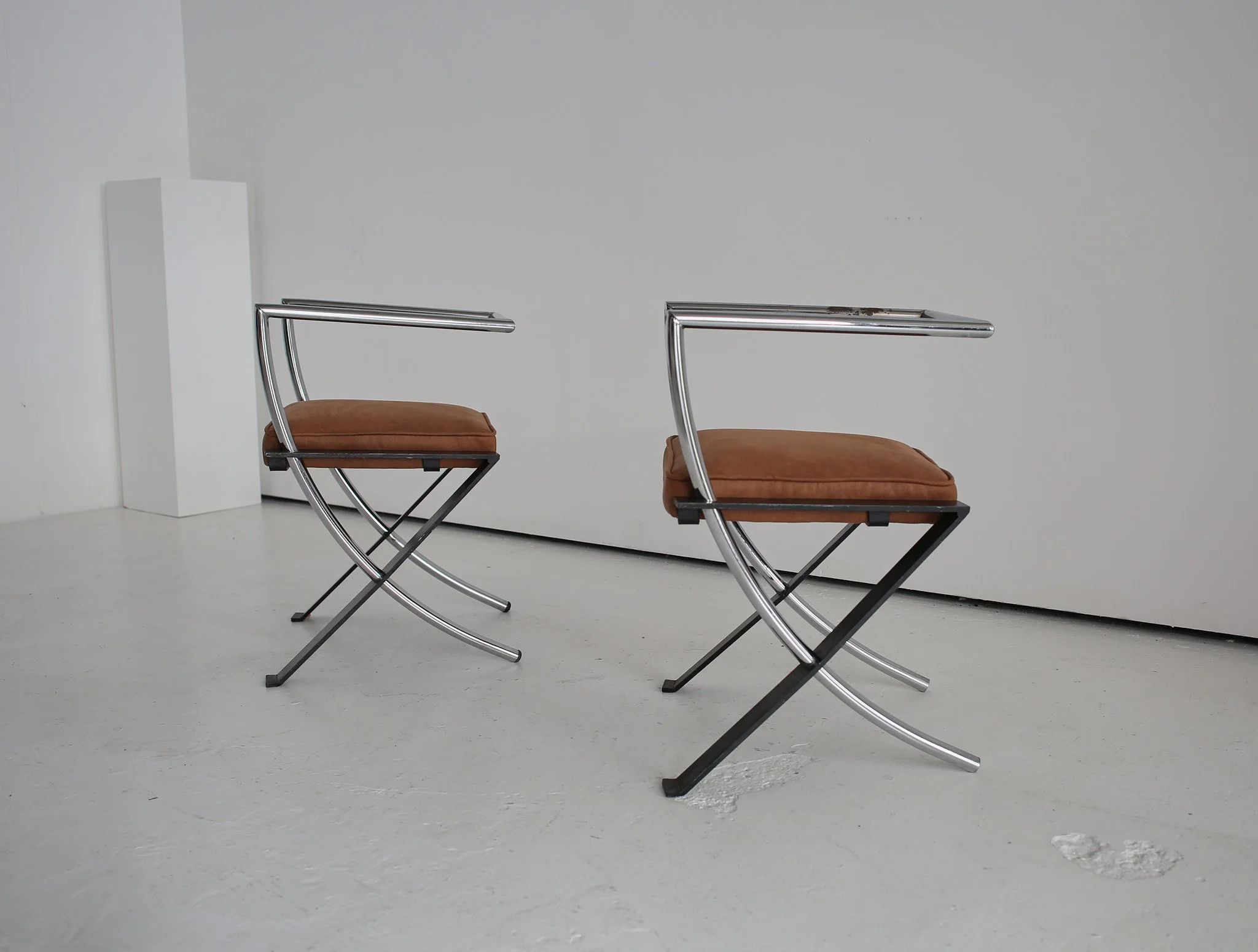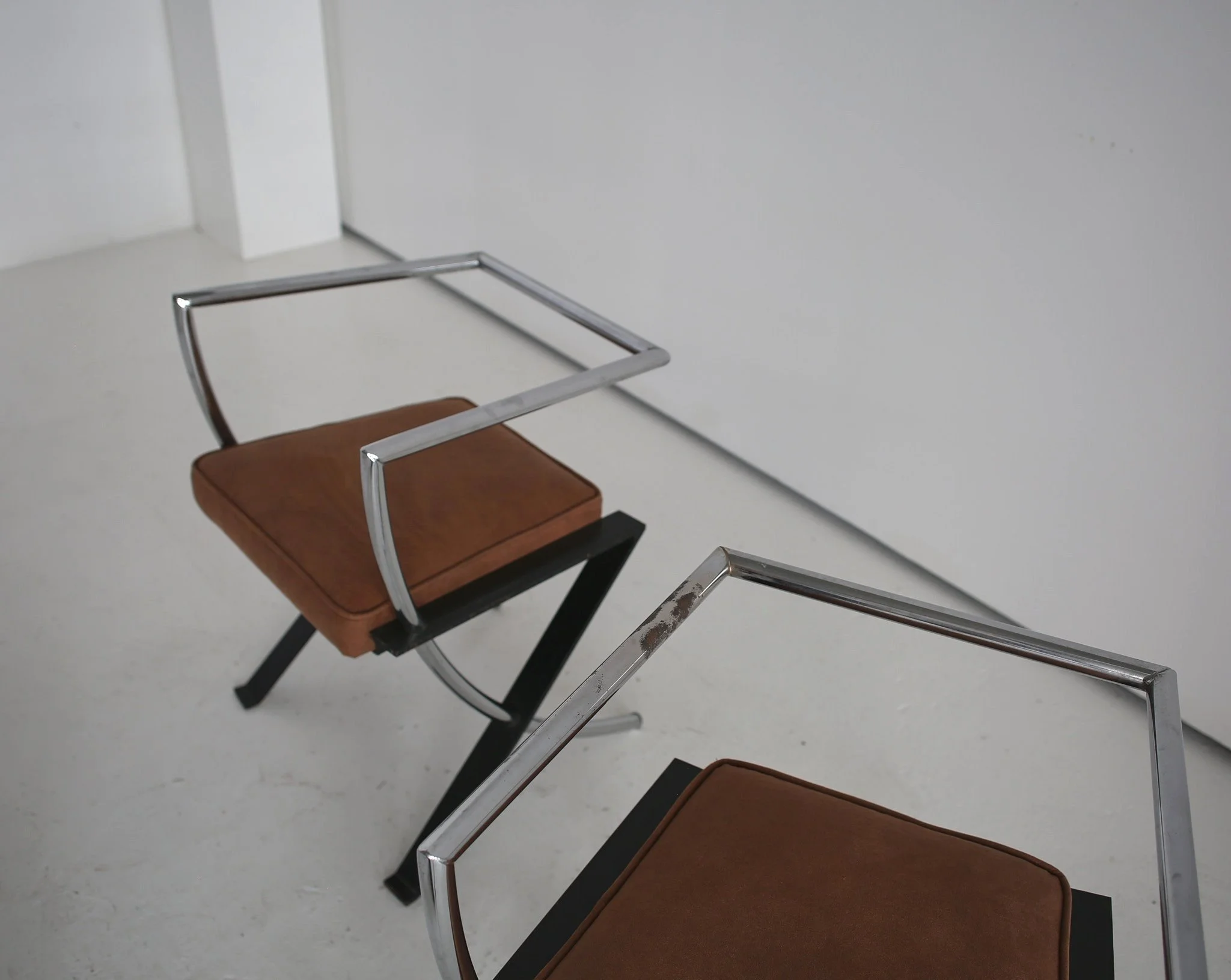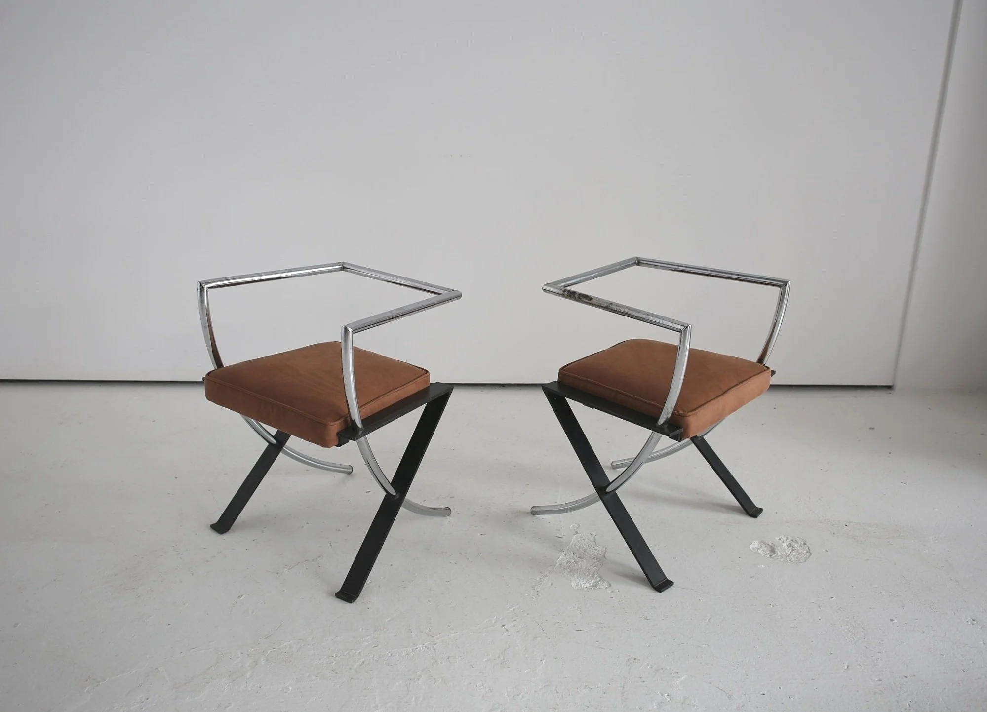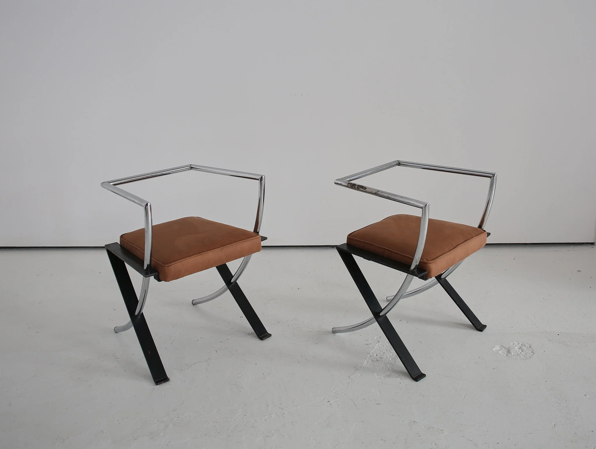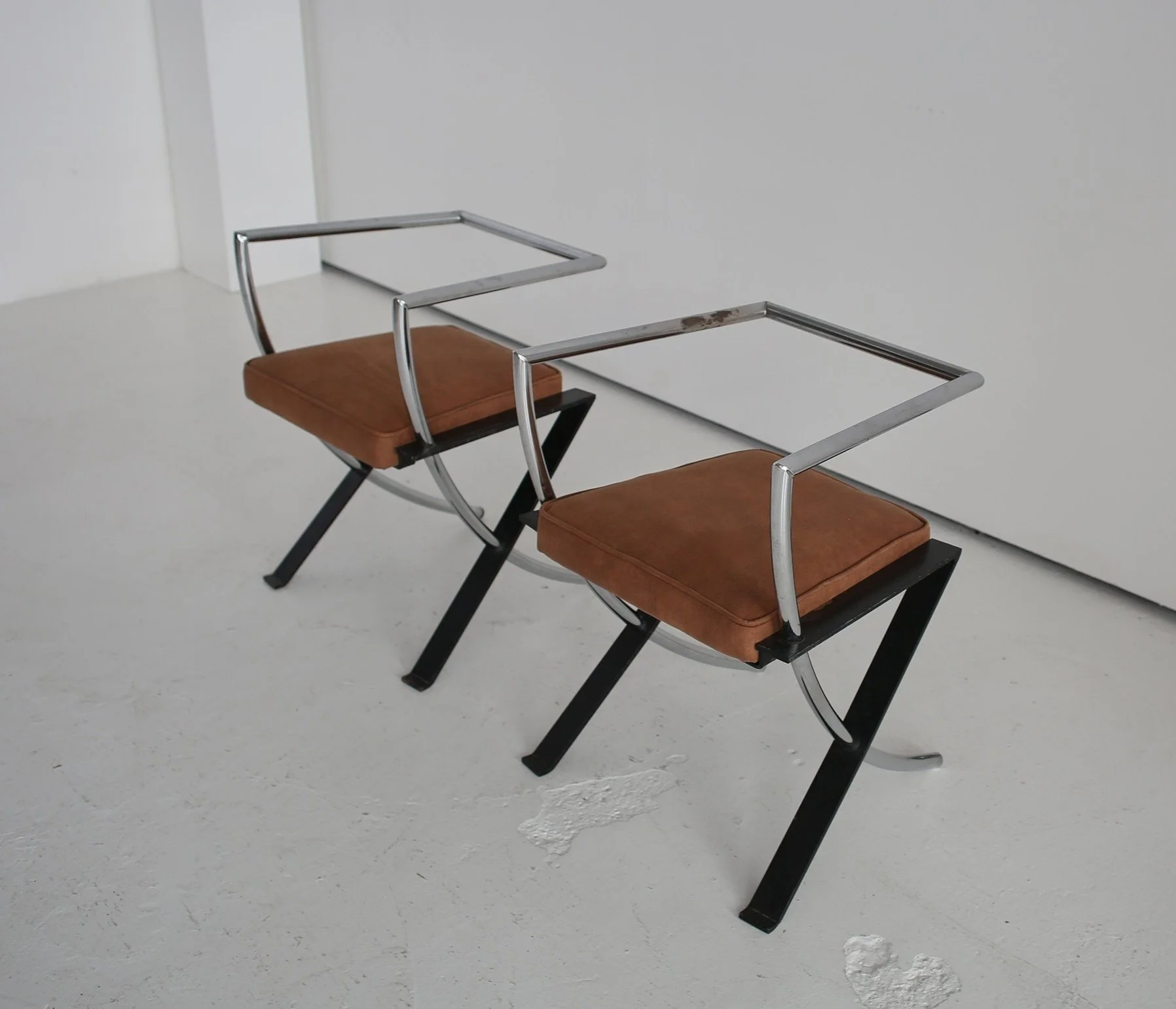 PAIR OF CHROME / SUEDE CHAIRS
